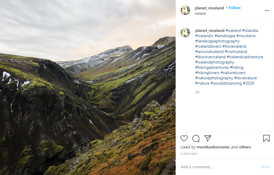 Next up is a dynamic landscape from Iceland, shot by @planet_niceland. We say “dynamic” because just look at those hills and slopes! Some landscapes have a sleepy or relaxed feel to them, as if the earth is at rest while grass and trees grow above it. This? This shot does not show an idle land, but a locale with rising surfaces that belie some tectonic activity. Mountains grow by inches, after all. How would this particular place change in the next thousand years?